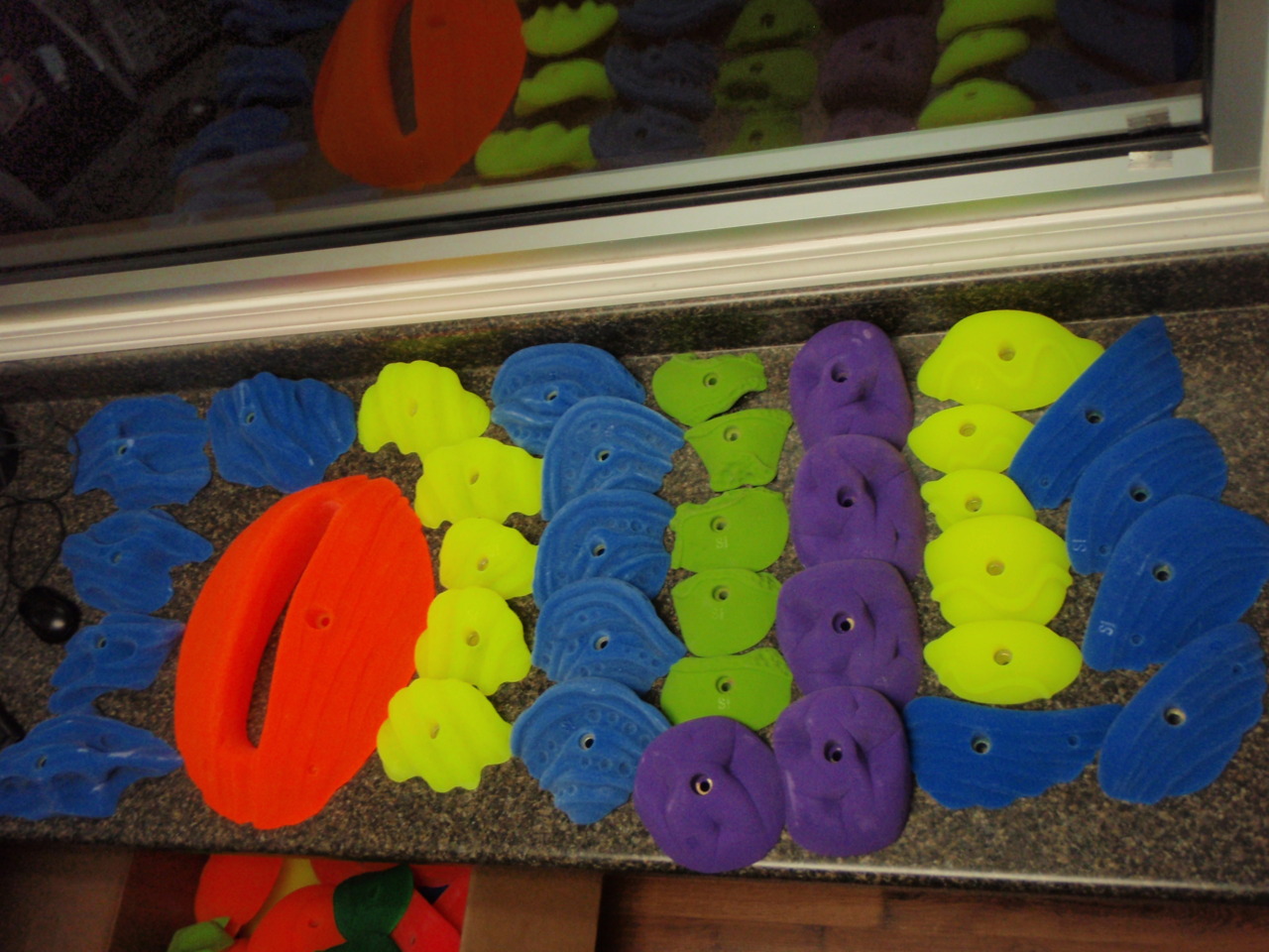 Sadly we won’t be able to screw these or any of the other new holds onto the wall until our Pro/Am Bouldering Comp, “The Showdown” on Saturday, December 10th. So consider this a big tease.