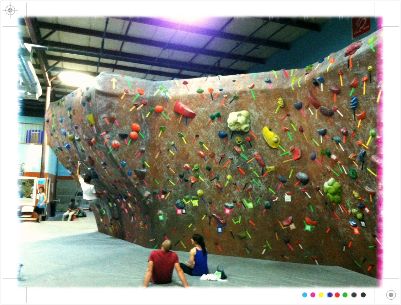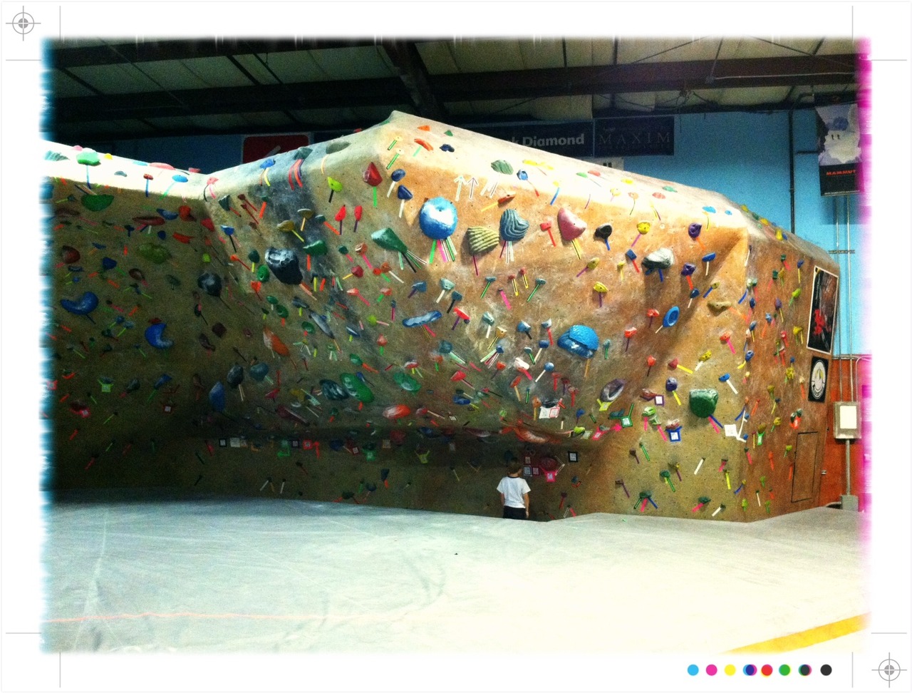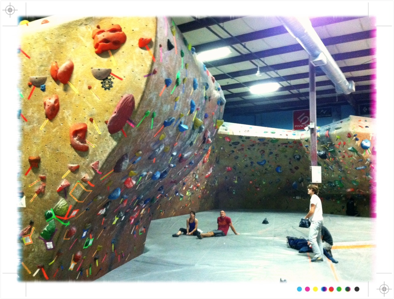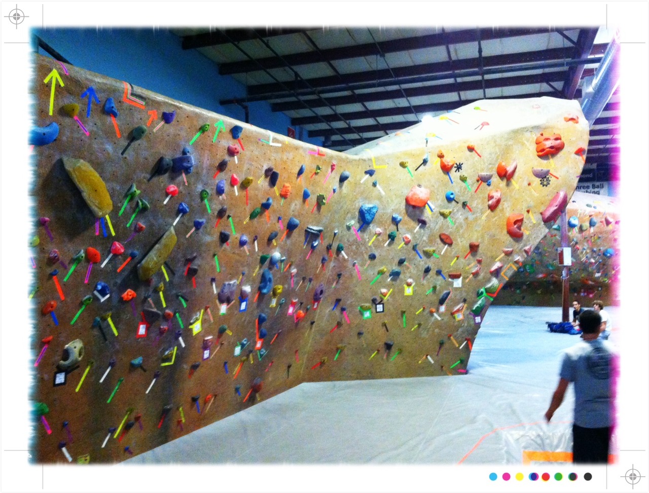 After a very successful, accident free (thanks to our new flooring system) ABS Comp on Saturday and an awesome Black Light Party Saturday night, the setters and I came in on Monday to start filling in the blank spots and to see if we could hit out target goal of 100 new boulder problems…