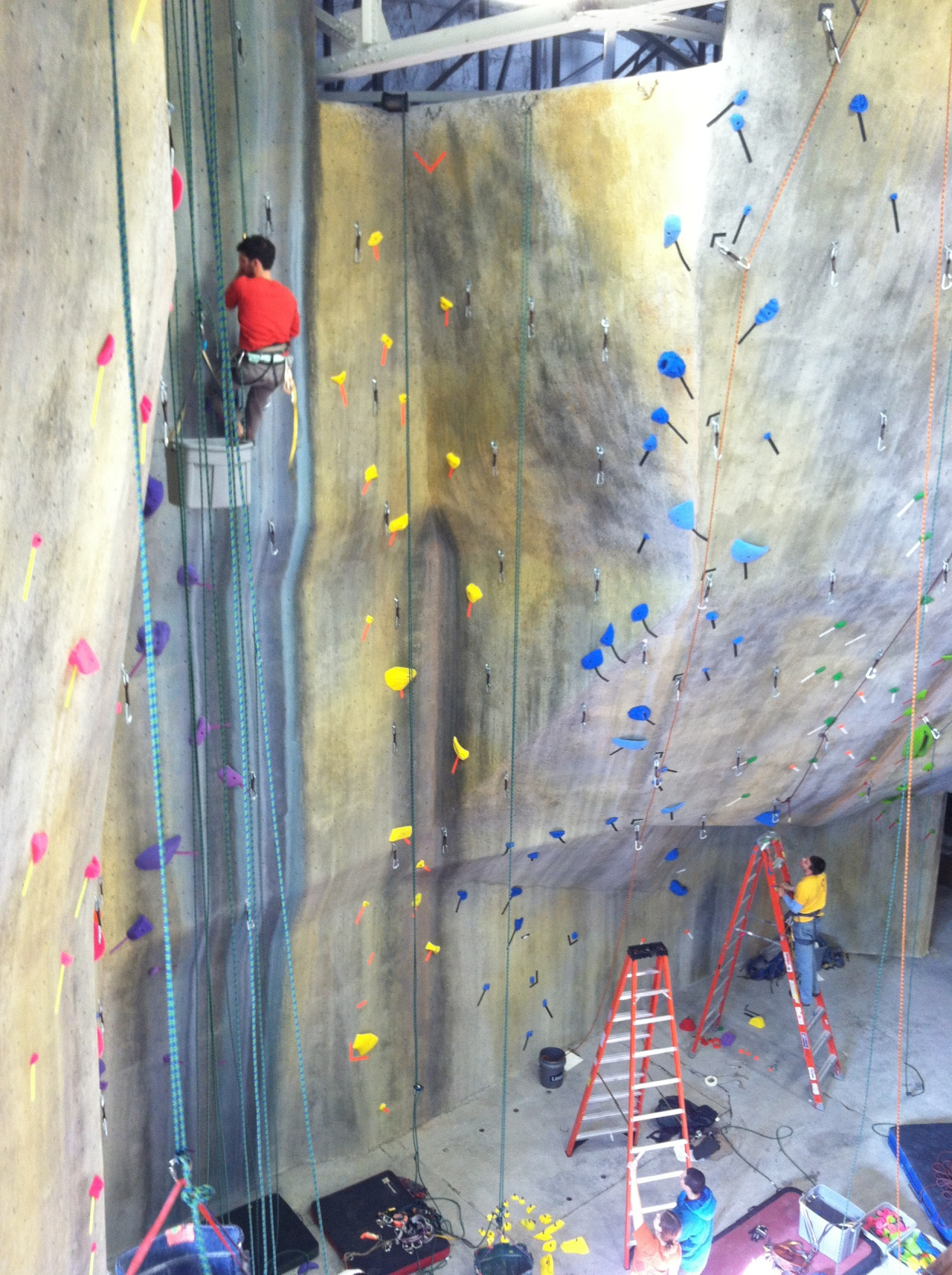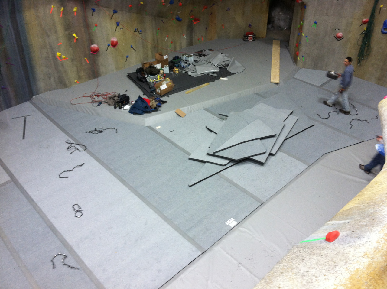 The third pic shows Keith Nadeau (awesome dude and great setter) cleaning up after one of many epic days of putting in the new gym floor.