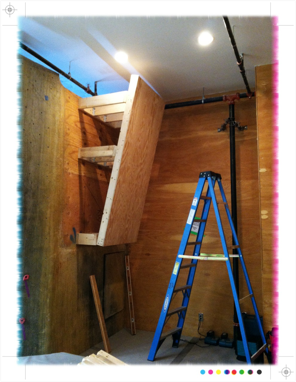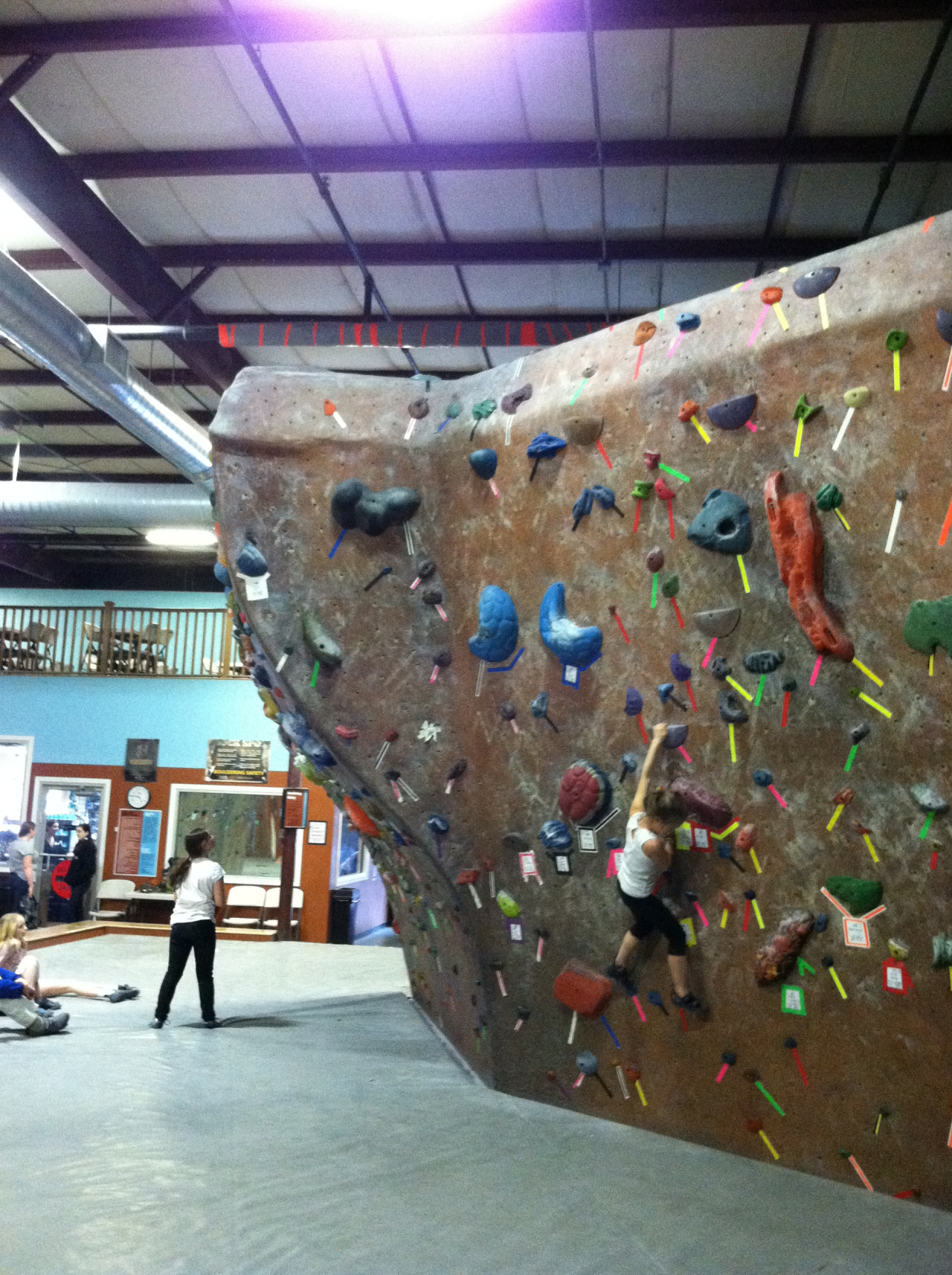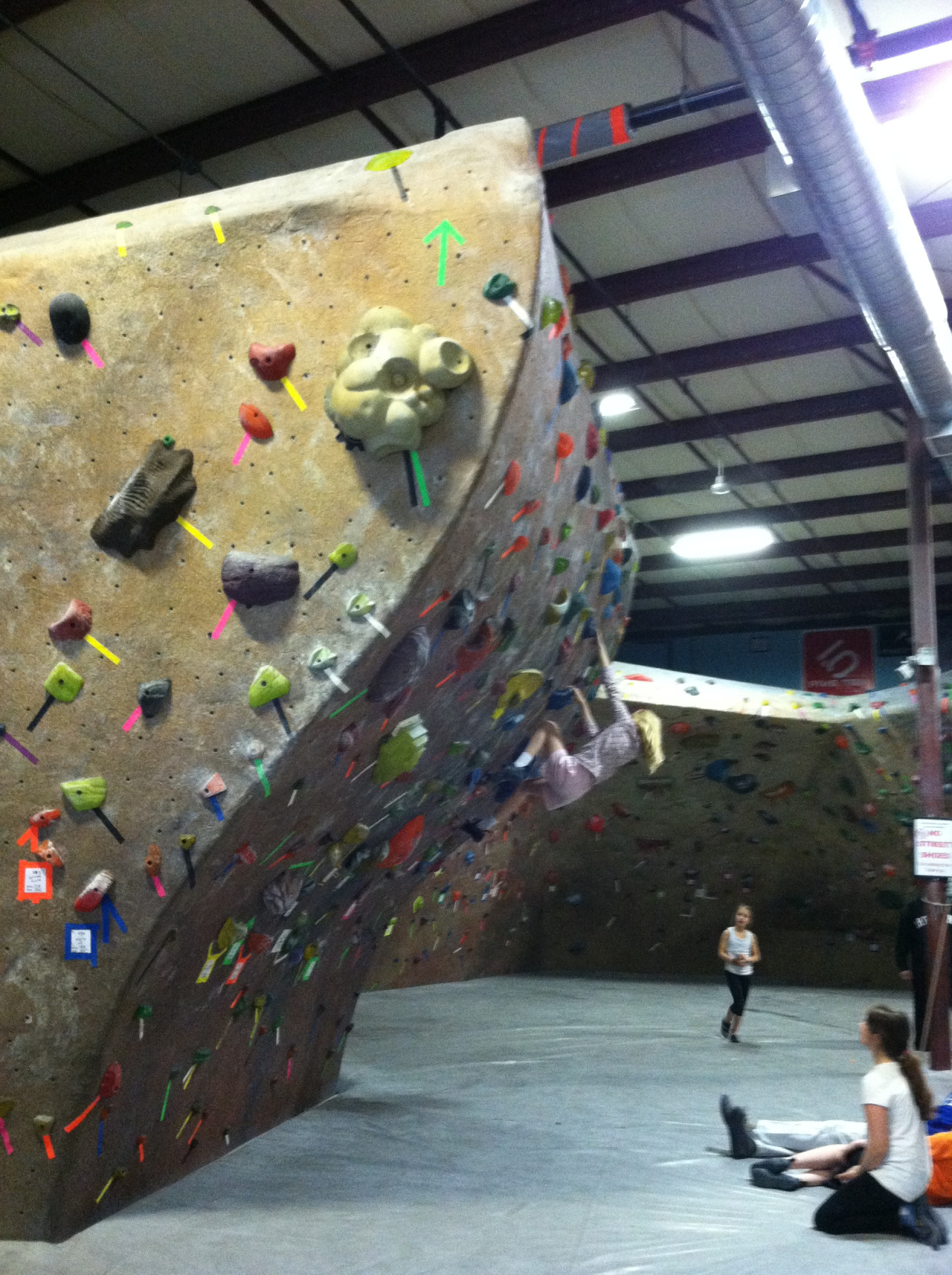 The third pic shows Nadav taking a test run down the slide after the guys from Rock Werx installed it. Brave man, Nadav. He wore his fast pants that day and nearly took out one of the walls…I’m kidding, but the slide is fast. So please be careful when partaking in the speedy descent of the second floor boulder.