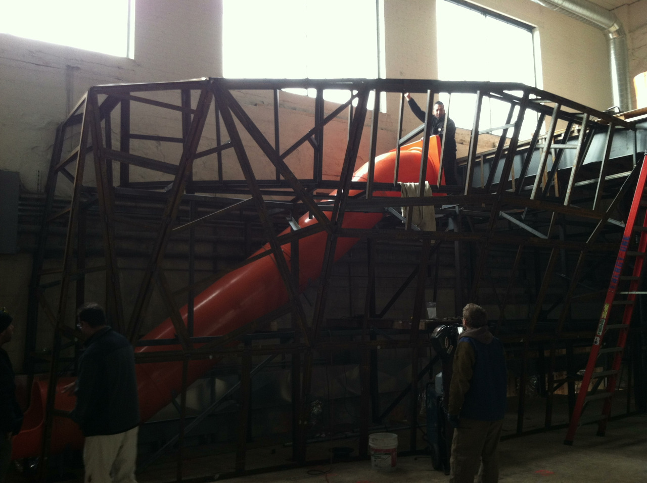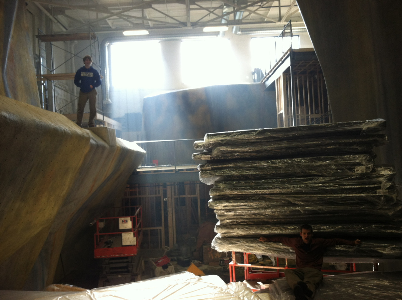 The third pic shows Nadav taking a test run down the slide after the guys from Rock Werx installed it. Brave man, Nadav. He wore his fast pants that day and nearly took out one of the walls…I’m kidding, but the slide is fast. So please be careful when partaking in the speedy descent of the second floor boulder.