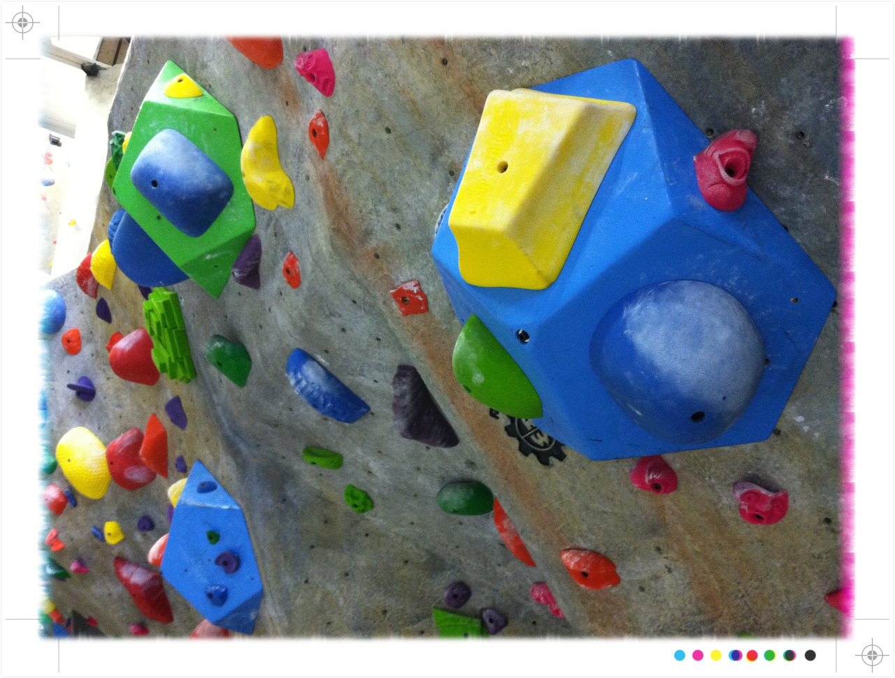 Rock Spot Climbing locations to use a combination of tape and hold color to mark routes