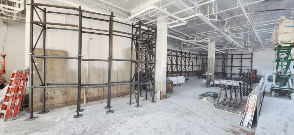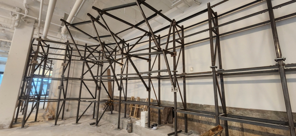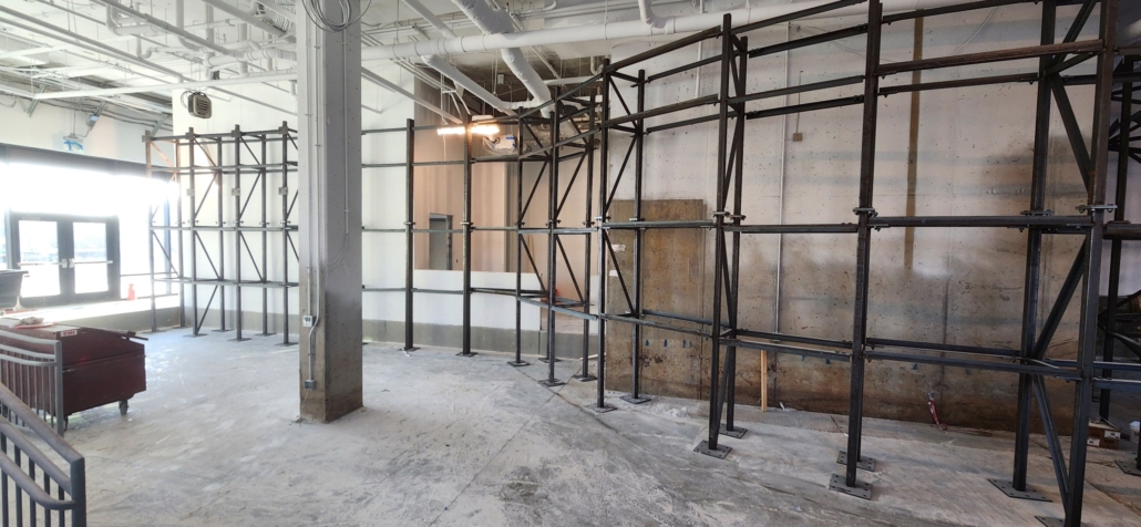 With construction complete on the back wall of the facility, our wall developer, Impact Climbing has already begun building the climbing walls with most of the steel frame ready for panelling so expect to see those start to go up soon.