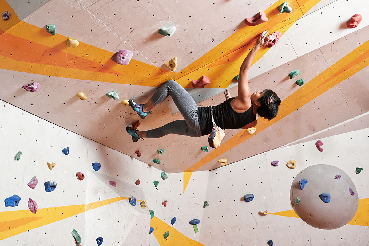 Much of climbing is going up, or over, or back—it’s a dance that requires you to be fully present. Sometimes that dance is delicate and requires you to slowly step through on your toes. Other times, it’s a flowy sequence of perfectly placed hand and footholds ready to be gripped and pushed past. And we can forget when it’s a powerful leap that leaves all your limbs flying through the air, only to be caught with just one hand.